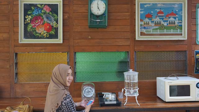 Dinding ruang yang penuh dengan ornamen jadul ini bikin hasrat foto-foto meninggi. Foto oleh ECHI