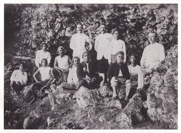 Kassian Cephas (duduk ketiga dari kanan) di Parangtritis, bersama Asisten Residen Tj. Halberstma di sisi kirinya. Foto ini diambil tahun 1897. Sumber foto